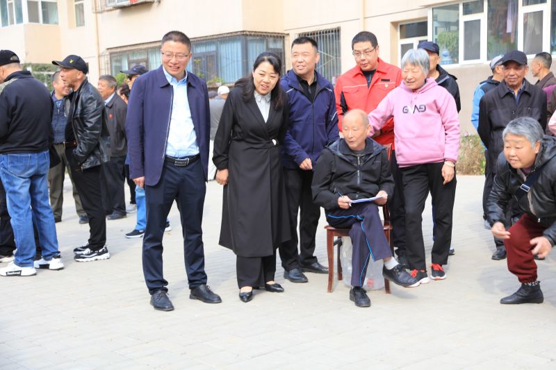 公司党委专职副书记、工会主席李会萍,纪委书记段勇,副总经理安道智在室外趣味运动会现场与老同志们共庆重阳佳节。