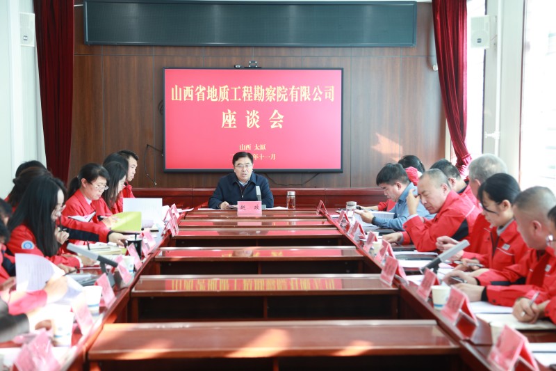 11月4日,地勘院有限公司召开座谈会,拓宽工作思路举措,激励经营实体提质增效,助推公司高质量发展。公司党委书记、董事长赵政主持座谈会并讲话,在家领导班子出席会议。